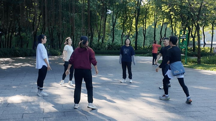 随处可见默契健身的市民