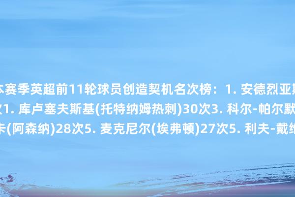 本赛季英超前11轮球员创造契机名次榜:1. 安德烈亚斯-佩雷拉(富勒姆)30次1. 库卢塞夫斯基(托特纳姆热刺)30次3. 科尔-帕尔默(切尔西)29次4. 萨卡(阿森纳)28次5. 麦克尼尔(埃弗顿)27次5. 利夫-戴维斯(伊普斯维奇)27次7. 蒂勒曼斯(阿斯顿维拉)25次8. 鲍恩(西汉姆联)24次9. 塔韦尼耶(伯恩茅斯)23次9. 伯纳多-席尔瓦(曼城)23次体育最新信息